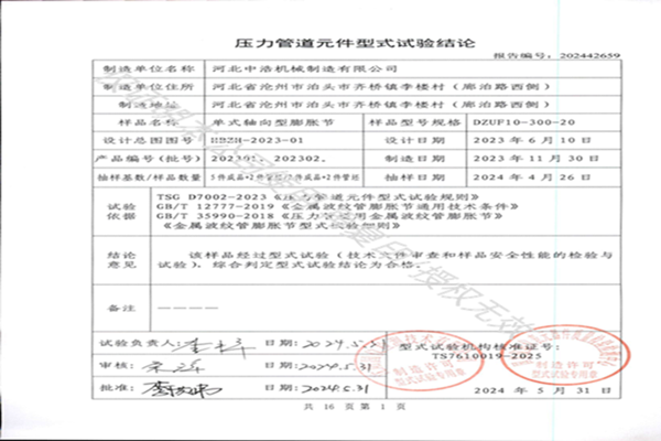 管道膨脹節 伸縮器等,經相關機構評估,各項技術文件審查和安全性能檢驗與試驗,綜合實驗結論為合格。再次為客戶解決后顧之憂,讓客戶放心選購,安心使用。